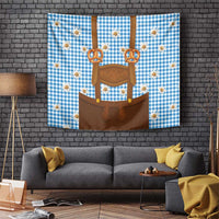 Traditional German Costume - Lederhosen and Soft Pretzel Tapestry Red Plaid Pattern with Edelweiss Flowers