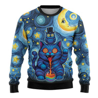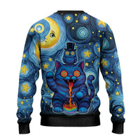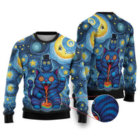 Trippy Cat and Owl Ugly Christmas Sweater Starry Psychedelic Vibes