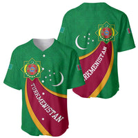 Turkmenistan Green Baseball Jersey with Crescent Moon and State Emblem Design TS04