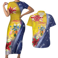 Turks And Caicos Islands Christmas Couples Matching Short Sleeve Bodycon Dress and Hawaiian Shirt Coquette Bow With Coat Of Arms