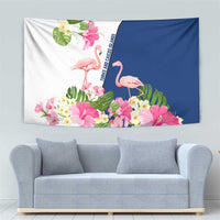 Turks and Caicos Islands Tapestry with Flamingos Floral Pattern and National Crest Design