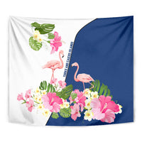 Turks and Caicos Islands Tapestry with Flamingos Floral Pattern and National Crest Design TS04