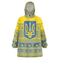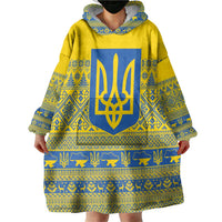 Ukraine Trident Christmas Wearable Blanket Hoodie Vyshyvanka Patterns