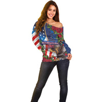 United States Memorial Day-Honor and Remember Off Shoulder Sweater