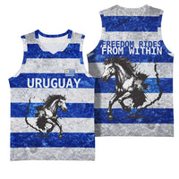 Don’t miss out. Get your Uruguay Basketball Jersey with Wild Horse Illustration Blue Gray Striped by Wonder Print Shop today and wear your style with confidence — whether it’s on the court or on the streets.