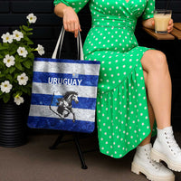 Uruguay Tote Bag with Wild Horse Illustration Blue Gray Striped TS04