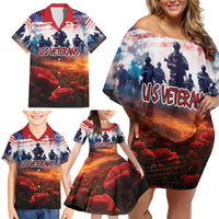 USA Veterans Day Family Matching Off Shoulder Short Dress and Hawaiian Shirt All Gave Some With Poppy Patterns