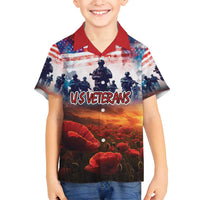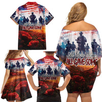 USA Veterans Day Family Matching Off Shoulder Short Dress and Hawaiian Shirt All Gave Some With Poppy Patterns LT18