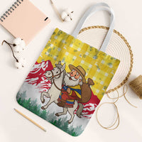 Venezuela Christmas Tote Bag with Santa on Horse Traditional Outfit Snowflakes and Yellow Plaid
