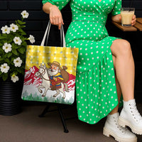 Venezuela Christmas Tote Bag with Santa on Horse Traditional Outfit Snowflakes and Yellow Plaid TS04