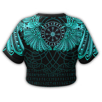 Viking Clothing Viking Odin's Celtic Two Ravens Cyan Version Croptop T shirt RLT12