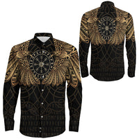 Viking Clothing Viking Odin's Celtic Two Ravens Gold Version Long Sleeve Button Shirt RLT12