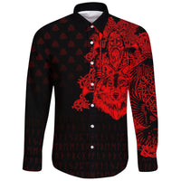 Viking Long Sleeve Button Shirt Old Norse Odin Tattoo Red RLT12