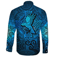 Viking Long Sleeve Button Shirt Raven Odin Celtic Cyan RLT12