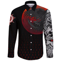 Viking Long Sleeve Button Shirt Viking Raven Blood Moon RLT12