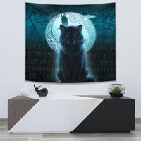 Viking Tapestry - Fenrir Viking Wolf - Cyan Version Tapestry RLT12