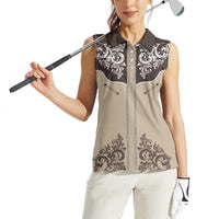 Vintage Western Cowboy Women Sleeveless Polo Shirt Brown Version