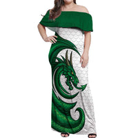 Wales Celtic Dragon Off Shoulder Maxi Dress Welsh Mythic Green Dragon