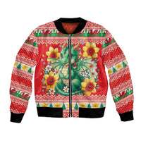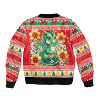 Wales Christmas Bomber Jacket Cute Green Welsh Dragon and Daffodils