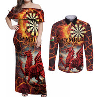 Wales Darts Wales Forever Personalized Couples Matching Off Shoulder Maxi Dress and Long Sleeve Button Shirt Cymru Am Byth Dragons LT9