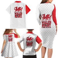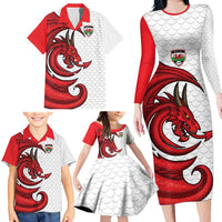 Wales Rugby Red Dragon Family Matching Long Sleeve Bodycon Dress and Hawaiian Shirt Cymru Am Byth