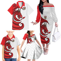 Wales Rugby Red Dragon Family Matching Off The Shoulder Long Sleeve Dress and Hawaiian Shirt Cymru Am Byth LT19