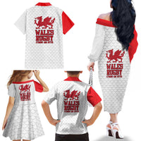 Wales Rugby Red Dragon Family Matching Off The Shoulder Long Sleeve Dress and Hawaiian Shirt Cymru Am Byth