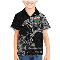 Wales Viking Ravens Family Matching Mermaid Dress and Hawaiian Shirt Vegvisir Runes Pattern