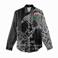 Wales Viking Ravens Women Casual Shirt Vegvisir Runes Pattern LT18
