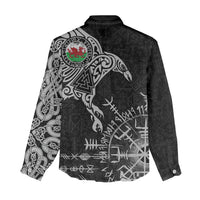 Wales Viking Ravens Women Casual Shirt Vegvisir Runes Pattern