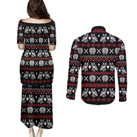 Warrior Of Indian Skull Couples Matching Puletasi and Long Sleeve Button Shirt Native American DT03
