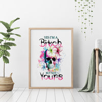 Watercolor Skull Canvas Wall Art Yes I'm Bitch But Not Your