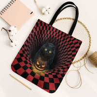 3D Illusion Cat Halloween Tote Bag Horror Cartoon Style