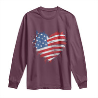 4th of July American Flag Heart USA Patriotic Long Sleeve Shirt Star Stripes TS11