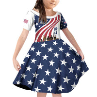 911 Memorial Family Matching Off Shoulder Short Dress and Hawaiian Shirt Patriot Day American Flag and Soldier Silhouette Honor and Remember