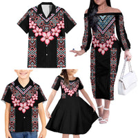 Africa Adenium Multiflorum Flowers Family Matching Off The Shoulder Long Sleeve Dress and Hawaiian Shirt Mix Native Tribal Pattern