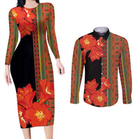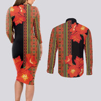 Africa Beauty Clivia Miniata Flowers Couples Matching Long Sleeve Bodycon Dress and Long Sleeve Button Shirt LT9