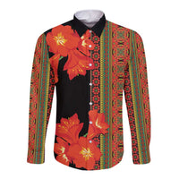 Africa Beauty Clivia Miniata Flowers Long Sleeve Button Shirt