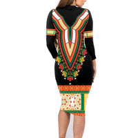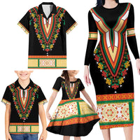 Africa Dashiki Family Matching Long Sleeve Bodycon Dress and Hawaiian Shirt Embroidery Neckline Floral Pattern