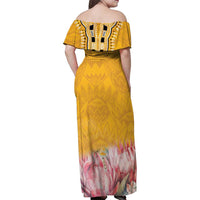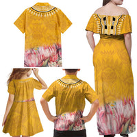 Africa Dashiki Family Matching Off Shoulder Maxi Dress and Hawaiian Shirt King Protea Floral Motif Patterns