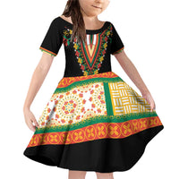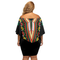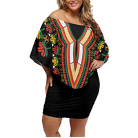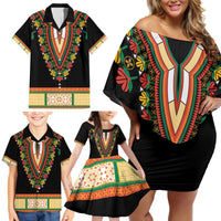 Africa Dashiki Family Matching Off Shoulder Short Dress and Hawaiian Shirt Embroidery Neckline Floral Pattern