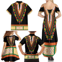 Africa Dashiki Family Matching Summer Maxi Dress and Hawaiian Shirt Embroidery Neckline Floral Pattern