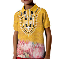 Africa Dashiki Kid Polo Shirt King Protea Floral Motif Patterns