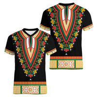 Africa Dashiki Women V-Neck T-Shirt Embroidery Neckline Floral Pattern