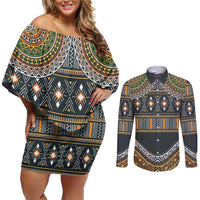 Africa Ethnic Native Pattern Couples Matching Off Shoulder Short Dress and Long Sleeve Button Shirt