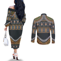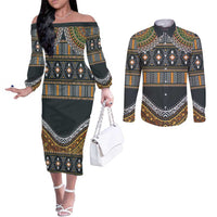 Africa Ethnic Native Pattern Couples Matching Off The Shoulder Long Sleeve Dress and Long Sleeve Button Shirt