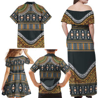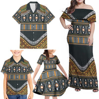 Africa Ethnic Native Pattern Family Matching Off Shoulder Maxi Dress and Hawaiian Shirt