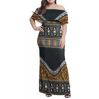 Africa Ethnic Native Pattern Family Matching Off Shoulder Maxi Dress and Hawaiian Shirt LT9