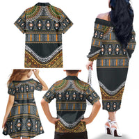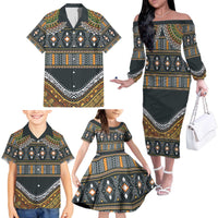 Africa Ethnic Native Pattern Family Matching Off The Shoulder Long Sleeve Dress and Hawaiian Shirt