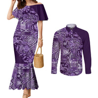 Africa Floral mix Maasai Shuka Couples Matching Mermaid Dress and Long Sleeve Button Shirt Purple Moitf